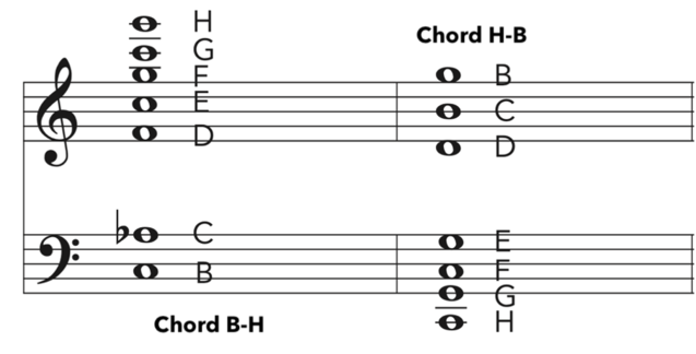 With this transformation [4], I generated two chords: one built using the series from the planet B to H, and the second from the planet H to B: