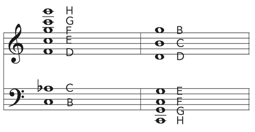 With this transformation4 I generated two chords: one built using the series from the planet B to H, and the second from the planet H to B: