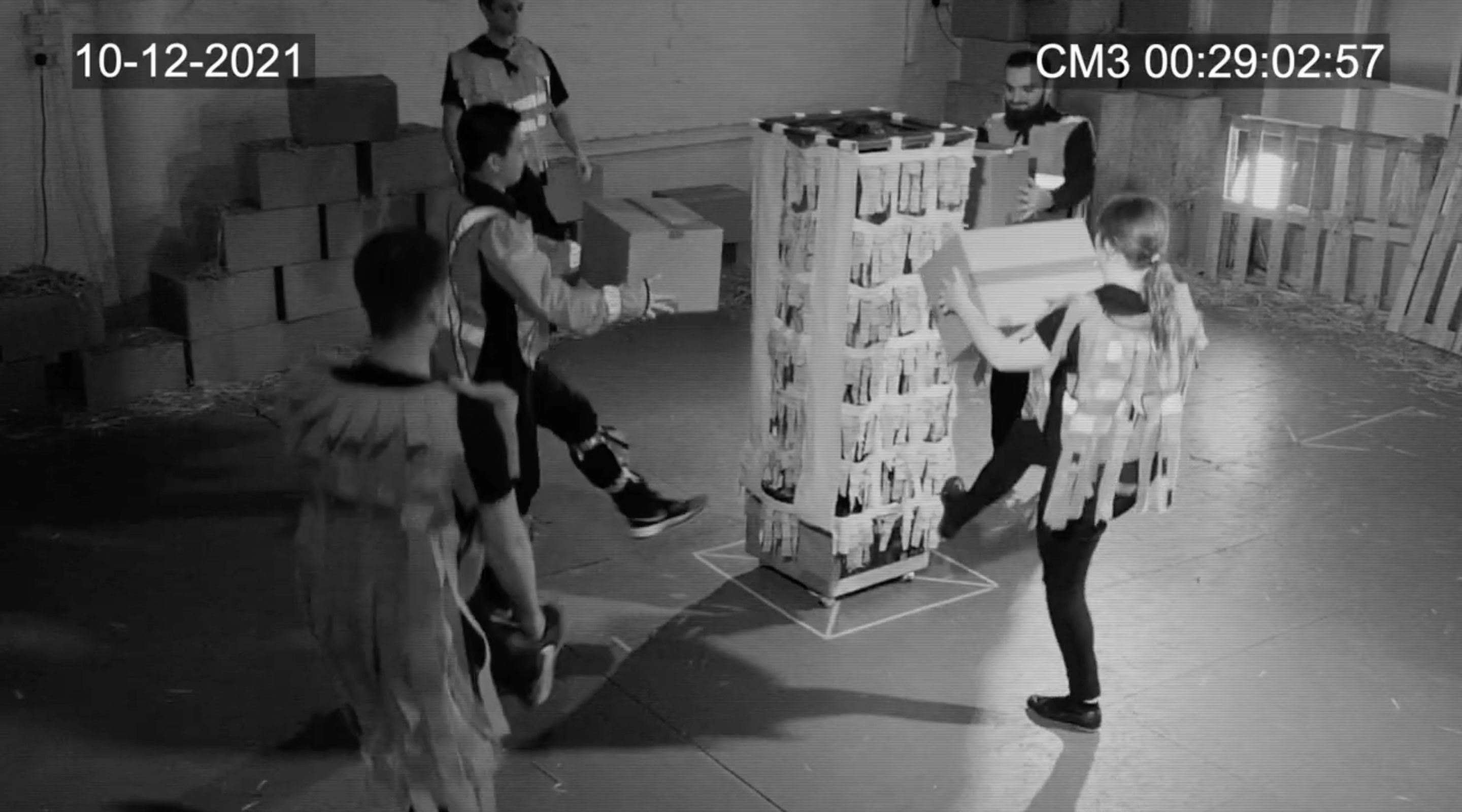 - Folk theatre character introduction style – Each character is presented using the folk theatre formula “in comes I…”. We also borrowed the languages from the performers, stressing Amazon’s use of vulnerable immigrants in their warehouses.