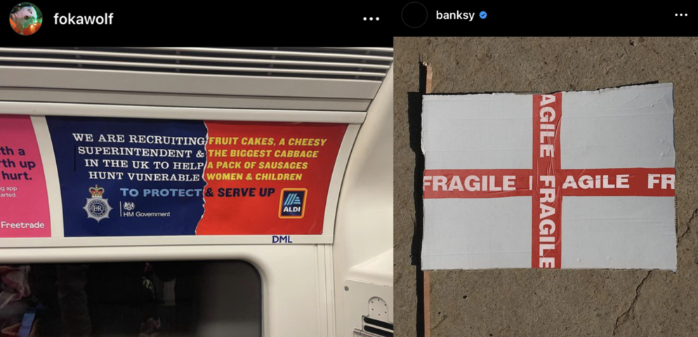 This idea of subverting a commercial, corporate symbols or icons to make a political statement has been widely used, for example, famously by the artist Banksy or, notoriously in Birmingham, by the artist Foka Wolf.