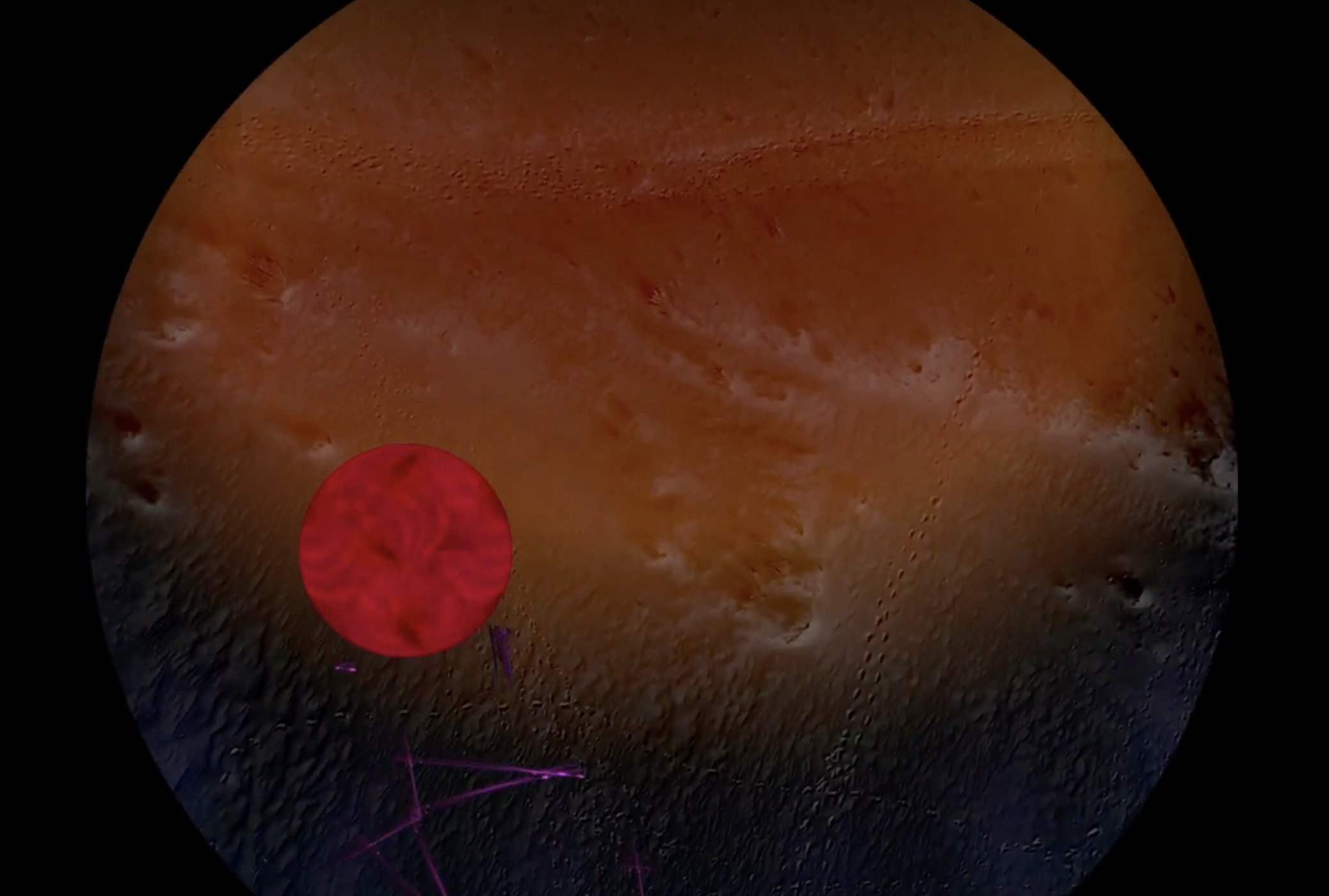The overarching idea in the third scene of The Flowering Desert is Pantele’s development of a magnetic field that would protect the planet from the star’s radiation. The process that would make this possible in the script is tidal heating. The gravitational pull of the star and its neighbouring planets in the planet’s orbit, and how the dissipation of this energy affects the inner core of the planet, can create a magnetic field that protects it from the stellar winds. This is the case, for example, of Mercury and the Sun in our solar system. Research shows that tidal heating happens in the TRAPPIST-1 system planets (Barr et al., 2018; Dobos, 2019). This idea of tidal heating is translated musically in the scene in the form of pulsation, showcasing the pull and release effect that the planet’s inside experiences.