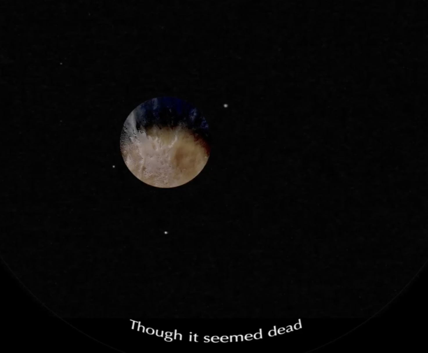The timbral design for the Measurer was then informed by some ASMR triggers, such as soft speaking, exhaling sounds, whispering, or mouth sounds. In the piece, the scientist’s thoughts are represented with what we called "whispered singing". This singing technique appears in two forms: “full” and “half” whispered. Full-whispered singing is a variation on whispering in which the airy sounds are pitched. Half-whispered singing is a variation on singing in which there is a conscious addition of airy noise in the vocal sound. The Measurer’s part is presented pre-recorded[80] and played in the rear speakers of the dome’s 5.1 system[81] to be experienced as a whisper in the back of the audience's heads, representing the Measurer's thinking.
