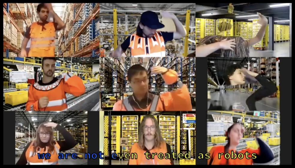 In this first creative cycle[19] we found this technique effective to present simultaneously the hoodening folk traditions, the automated world of Amazon, and the dramatic action of the play, deciding to use it in the final development of the work.