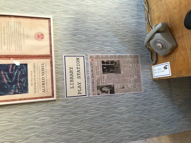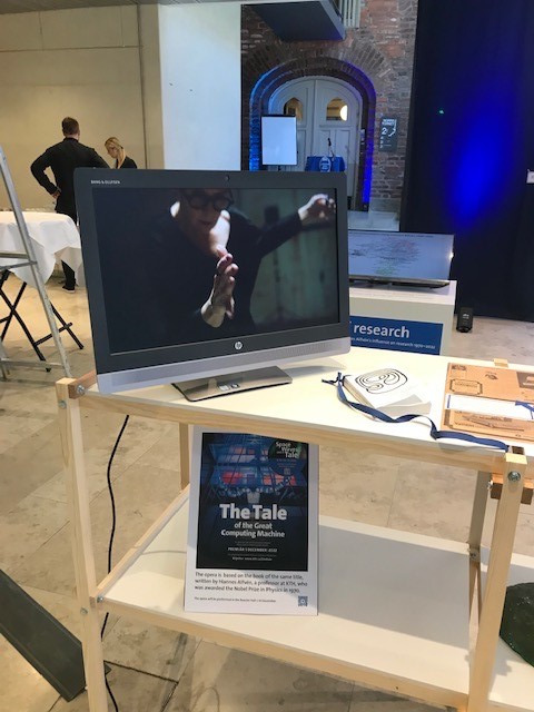 This is an example of how a graphical exhibition could look like. There was an exhibition in the KTH Library 2022 called Space Waves and a Tale which presented parts of Alfvén's extensive research, his community engagement and last but not least, his fictional story The tale of the great computing machine from 1966.