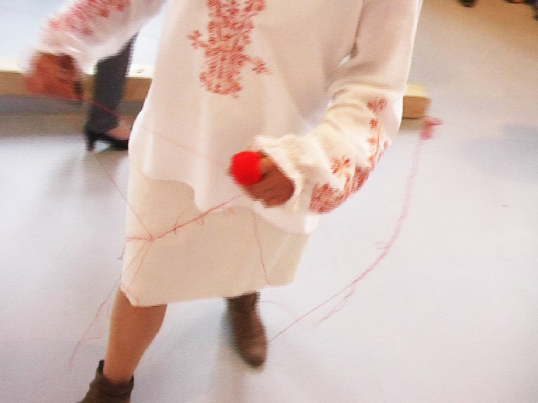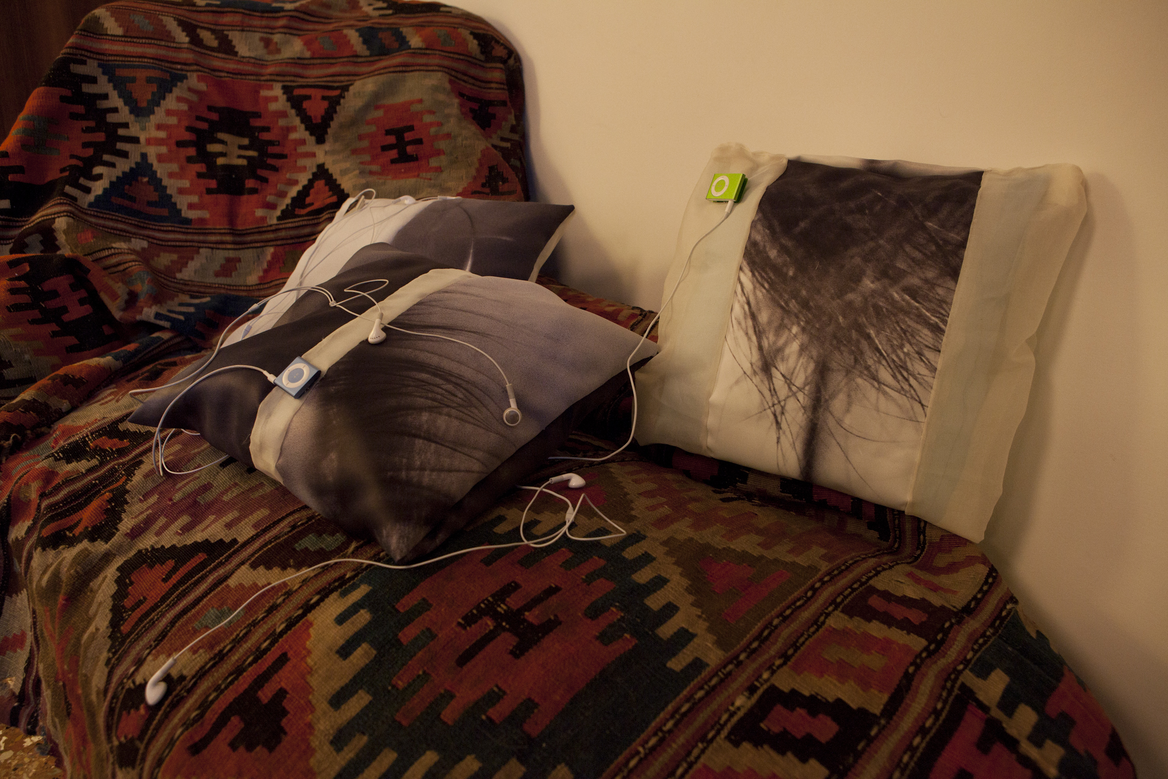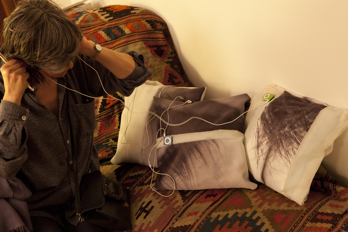 – an assemblage with sound (6 channel mono discrete) and textile (2 x silks)