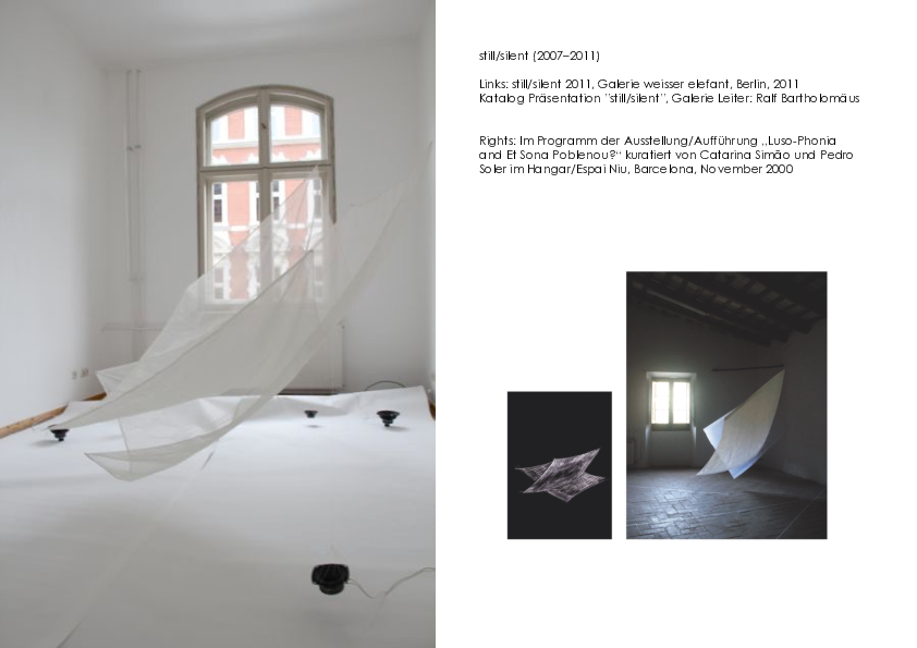 This installation "still/silent" (2011), Gelerie weisser elefent, Berlin is a silent spatial installation in the room.