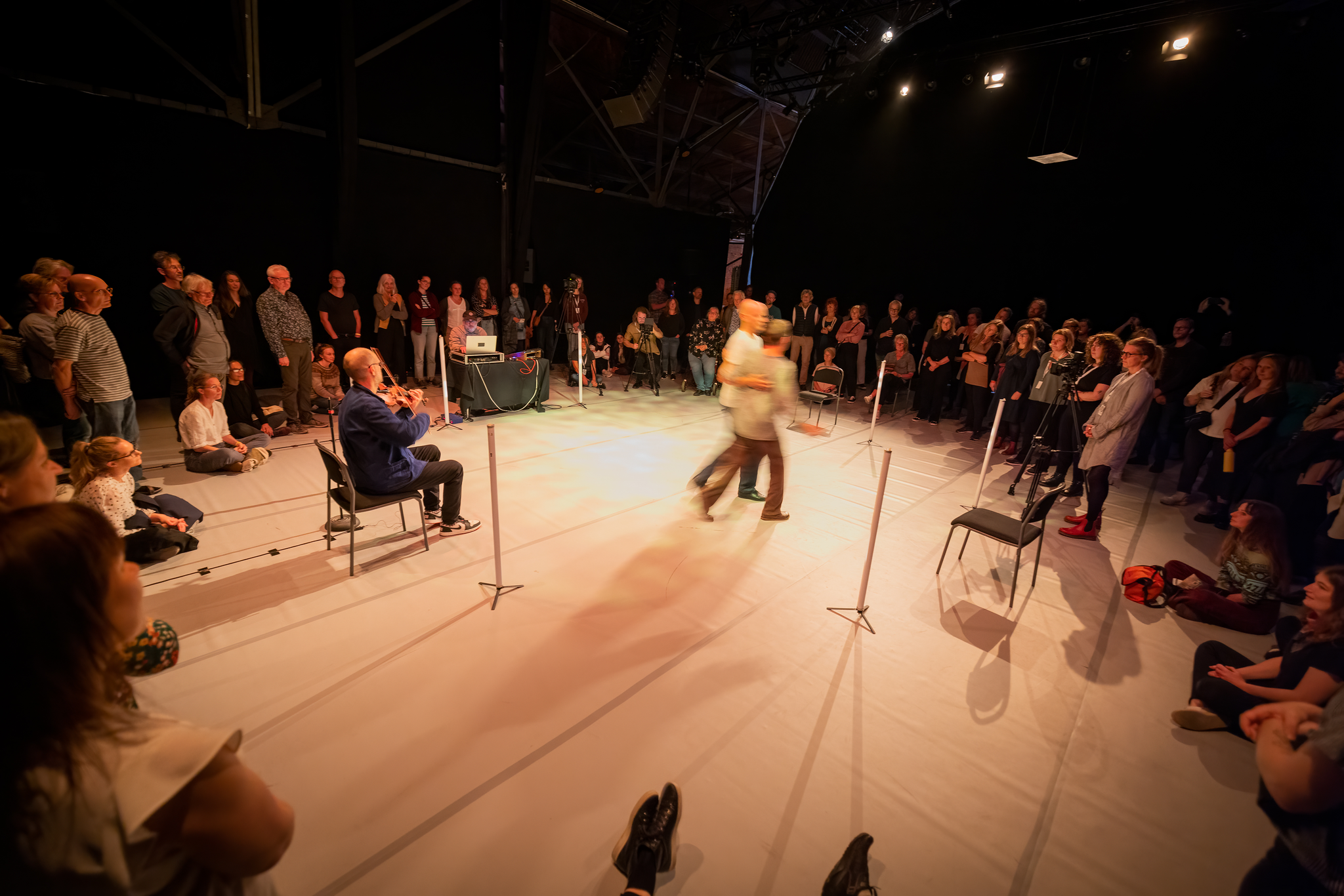 The participants in this work, including the author, the dancers Ami Dregelid and Andreas Berchtold, and the musician and sound/light artist Hadrian Prett, are established performers and pedagogues in the Swedish folk music and dance community and employed within central educational institutions in the field, such as the Department of Folk Music at the Royal College of Music in Stockholm (KMH), the Folk Dance Education at Uniarts in Stockholm, and the Eric Sahlström Institute in Tobo, Uppland, Sweden. The research was conducted as part of the doctoral project ‘Music-Dance Mediations — Performative Explorations into an Asymmetric Type of the Swedish Polska’ (Misgeld 2024) at KTH Royal Institute of Technology, Stockholm, Sweden.