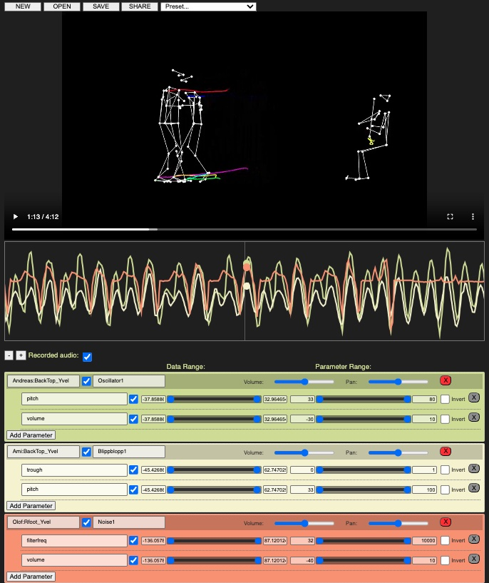 This text articulates my experiences performing various parts of the project and serves as an additional entrance to the research. It narrates the process of engaging in mediated interactions between music and dance in fragments of texts visually interleaved with images and animations.
