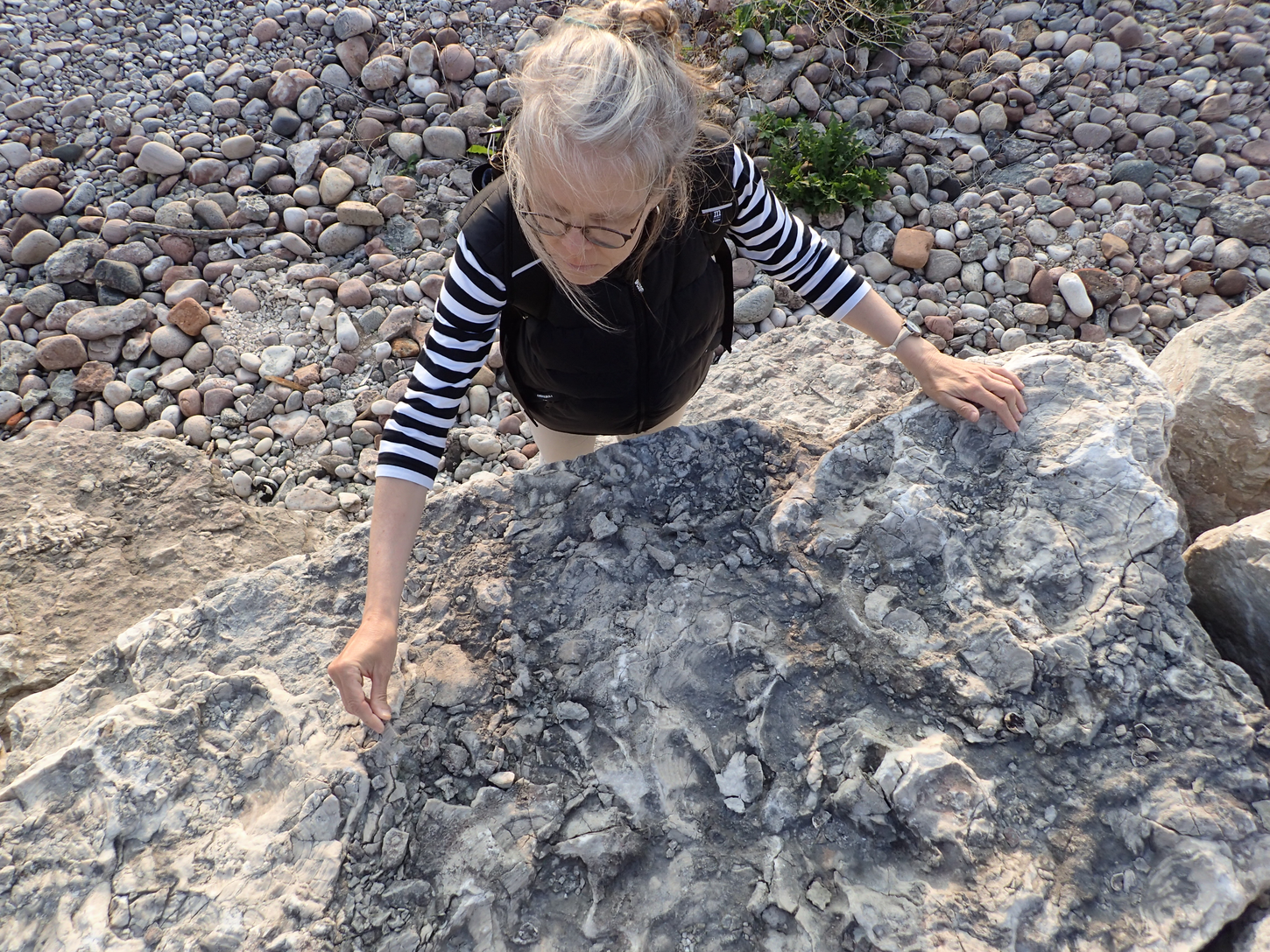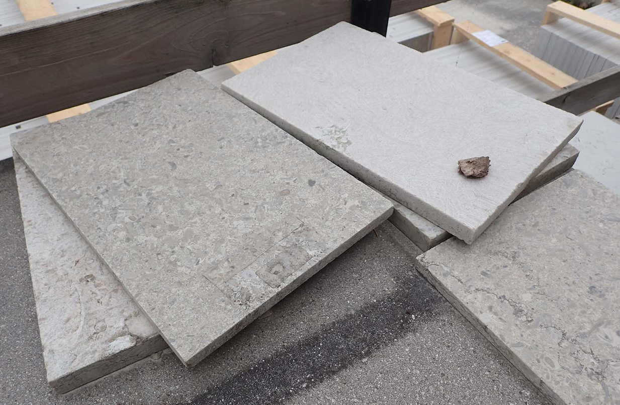 The mapped fossil imprints will be marked with code letters, printed on vinyl and taped directly on the floor cladding. The littera on the limestone slabs refer to the A3 sheets of the Atlas.
