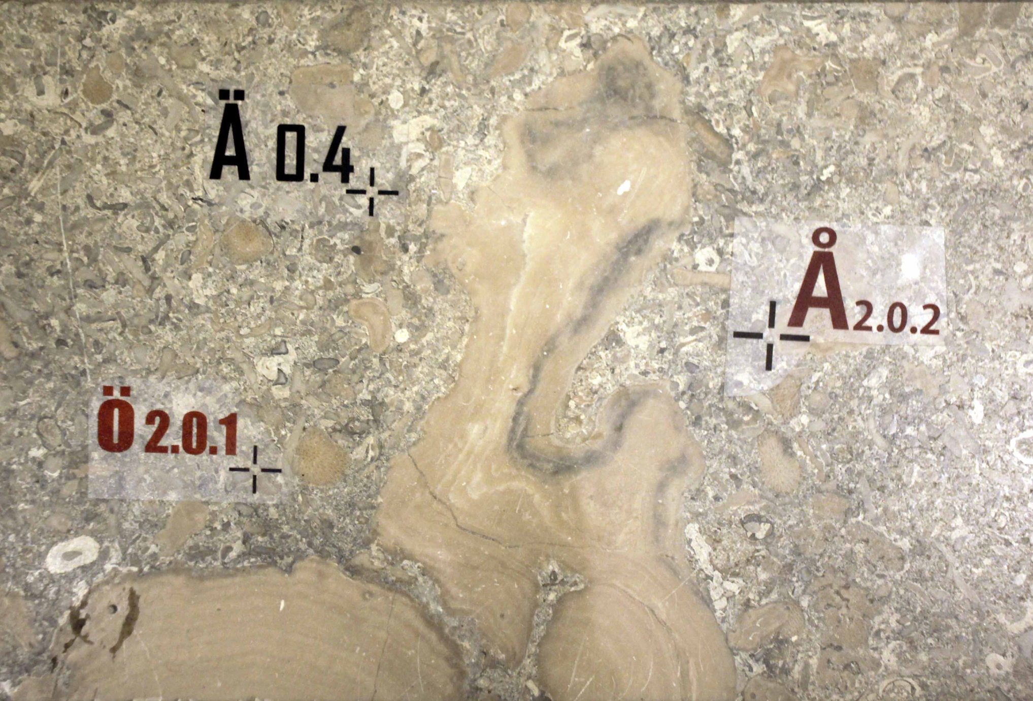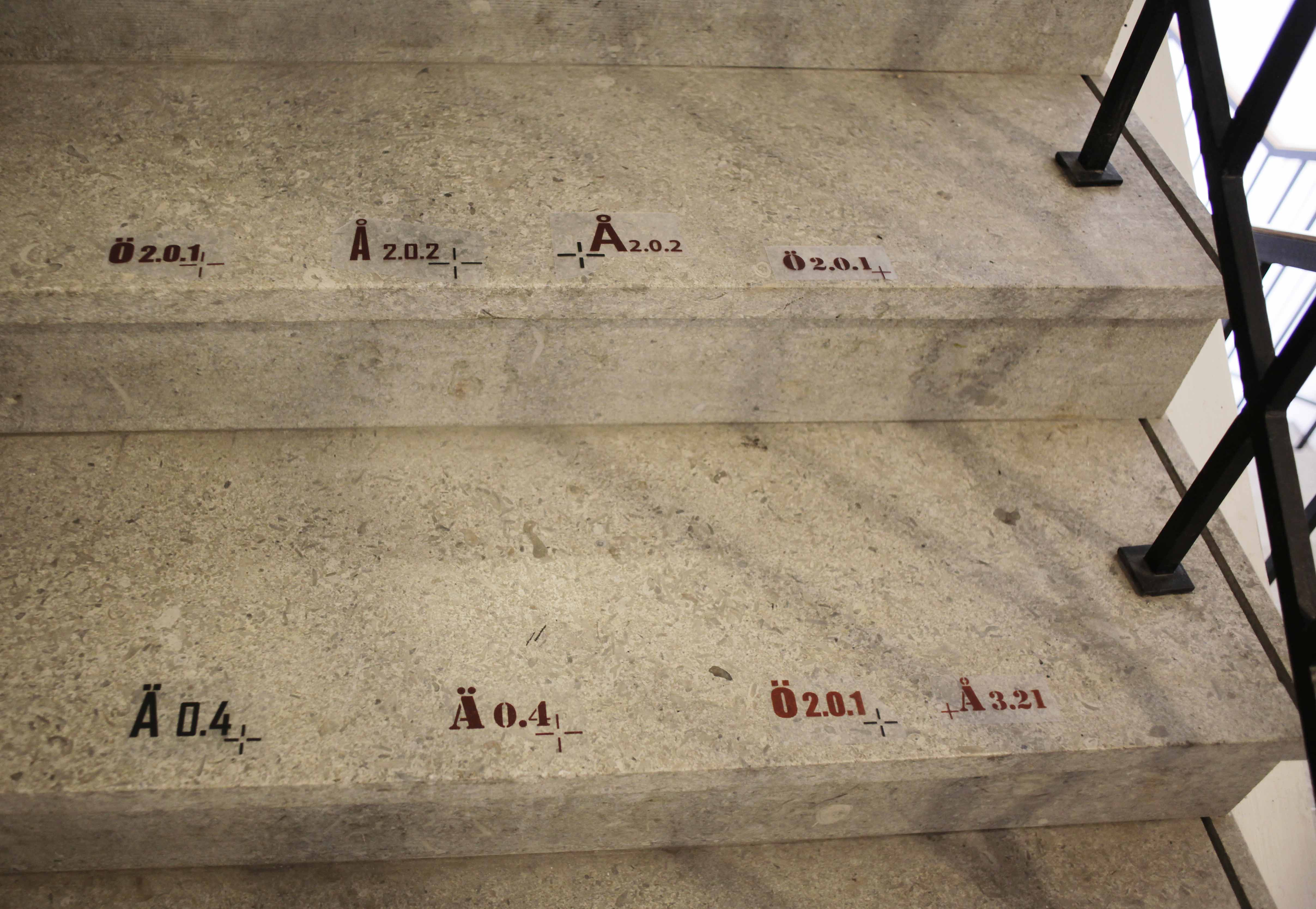 We were also trying out different font types to mark the fossils on floor slabs. The three staircases will we coded with scandinavian letters Å, Ä and Ö.
