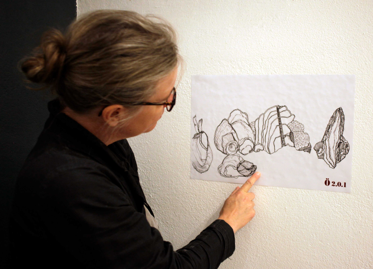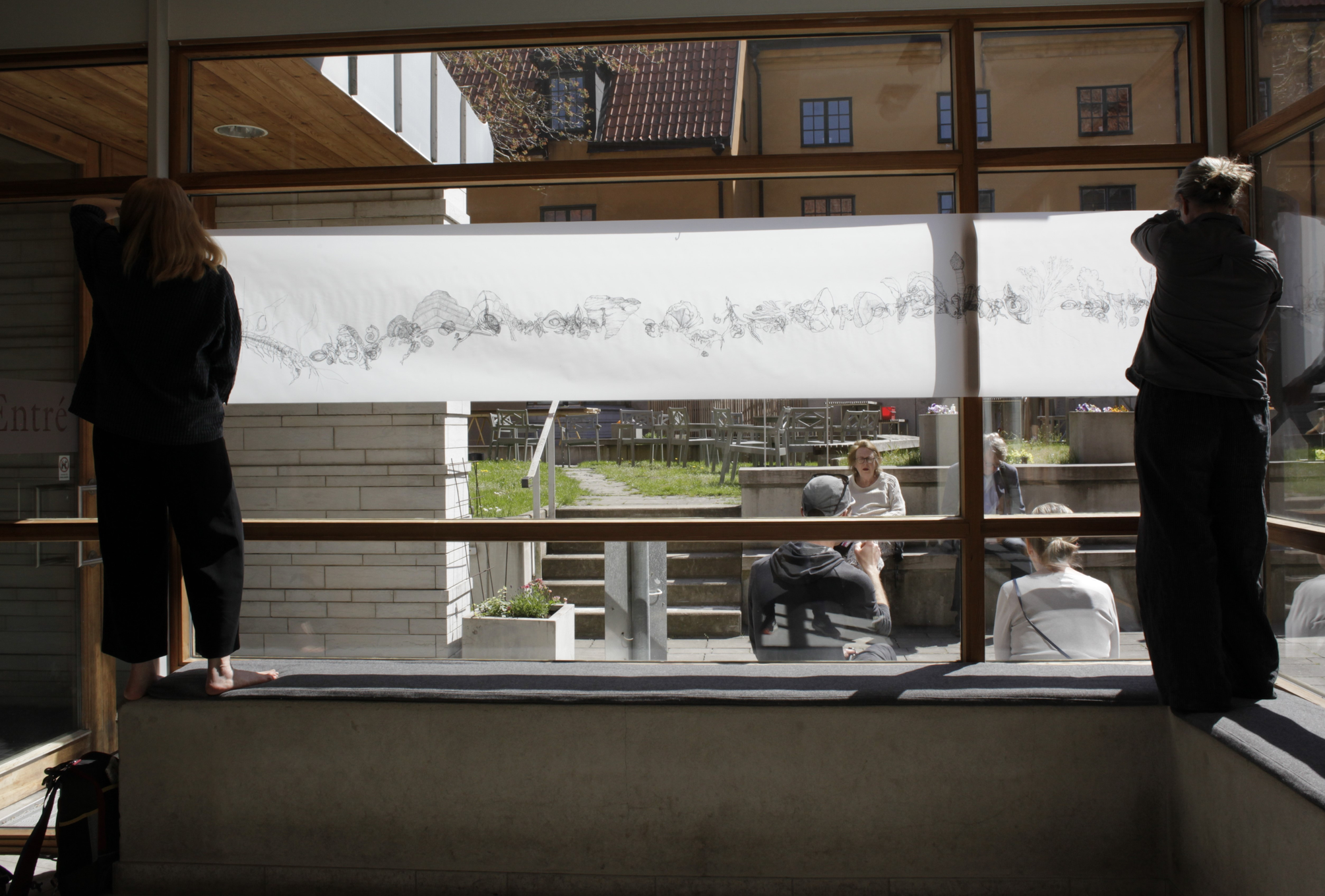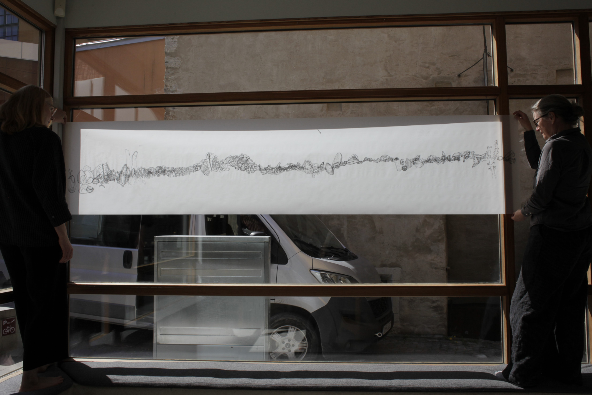 Coordinator Anna Norberg from the Baltic Art Centre helped me to mount a testprint of a drawing on the museum wall in May 2024.