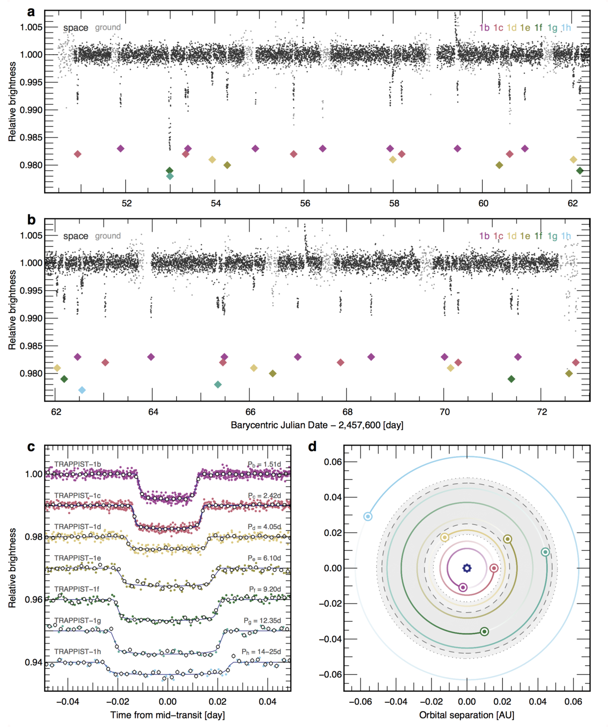Figure 3 Graphical display of the TRAPPIST-1 transit data. Source: Gillon, M., Triaud, A. et al. (2017)