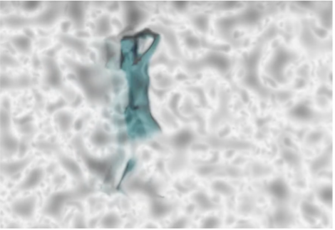 During COVID restrictins I created some videos in the first cycle to explore ways of representing the underground world of the Rainforest and the plantation. As you can see from these videos (see Fig. 17 and appendix AP 2.1.e) one key element that emerged was the use of the body as a bright object in a dark space to mimic the imaging process of roots and plants in soil. I used a white morph suit and recorded myself in a black box environment so that I would then be able to explore manipulating the image with video software more easily. These initial explorations into movement provided a score which myself, Wanshu (designer), Jingya (choreographer) and the performers would be able to refer back to during the rehearsal and development process. After re-recording scene 1 and generating these videos I also created a series of animations to help explore further ways of expressing the context and drama of the subject of this scene. We used this film as a projection alongside the performance in scene 1 (this film can be seen in appendix AP 2.1.g).