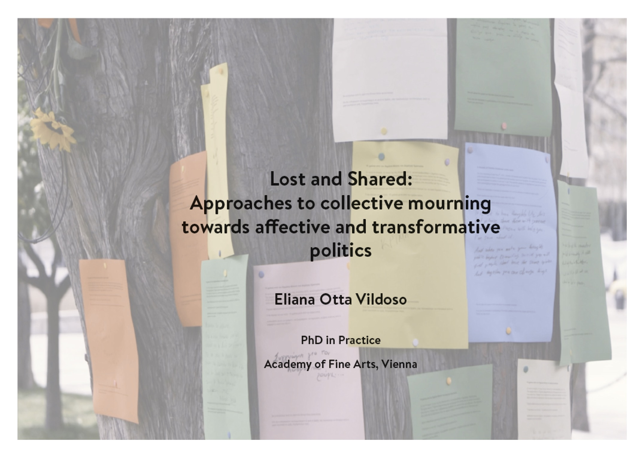 Taking as a departure point my experience working with war survivors in Peru, this project investigates how art can enable the collectivization of mourning. I connected my interest in the act of mourning human losses with my experiences living in Athens, Greece, where I encountered depression as a common diagnosis on both the individual and collective levels. If being depressed relates to unresolved mourning processes, what are the objects of loss caused by economic crisis and political disillusion? How can art help us to mourn an abstract loss, such as a political project, a certain sense of dignity, a particular relation with time and nature, or a fixed role in the familial structure? How could mourning be shared to allow communities to reframe and re-signify those objects of loss, towards transforming our relation to the economic and political? Lost and Shared creates dialogue between theory and affective labour, through collective experiences that connect emotions, critical thinking, body and space. The intuitions and questions brought by conversations with Greek activists and artists are the core of the project. Later on, facing the impossibility of working as planned due to the pandemic, Lost and Shared was adapted to the new socializing conditions and to acknowledge how crisis and mourning had become a global concern. Thus, the project ends up proposing the idea of “fertilizing mourning” as a concept in the making - an open invitation to collectively create practices that help us reconsidering the entanglements between life, death, and regeneration. Urgent practices we need today in order to contest the increasing, global processes of loss caused by capitalism.