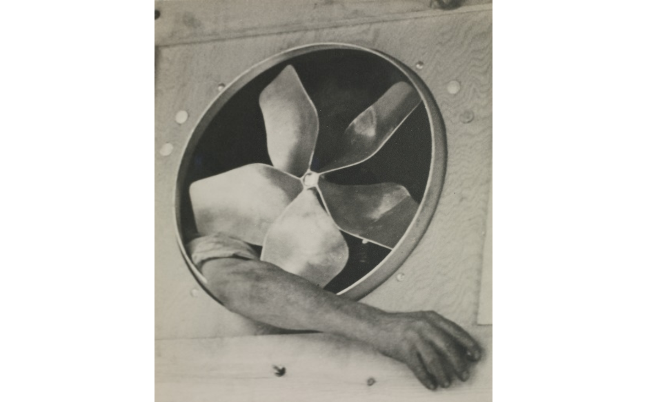 Arm and Ventilator, a striking 1937 image by the Jewish, Hungarian-born photographer André Kertész, shows an arm protracting from between the blades of a ventilator. The details are enigmatic. The arm – the right – is lean and masculine, with a cotton sleeve rolled up past the elbow. But what this most functional of limbs is doing is not apparent, and the rest of the image sheds no light on the matter. Outlines of a forehead and eye cavity are barely perceptible in the darkness behind the ventilator; any intention behind the gesture remains caught in obscurity with them.