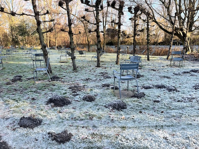 The process starts with an onsite visit to Amstelpark, Amsterdam during the winter time. To me the starting point to any work is an instantaneous, bodily reaction to the site where the project is rooted in. At the park my attention directed to the different ways the land, in the context of an urban park that we are in, is being gardened, stewarded. Which areas of the park are covered with asphalt, which areas have the the shortest grass, which areas the falling leafs are collected away from, and where perhaps the soil can aggregate unattended.