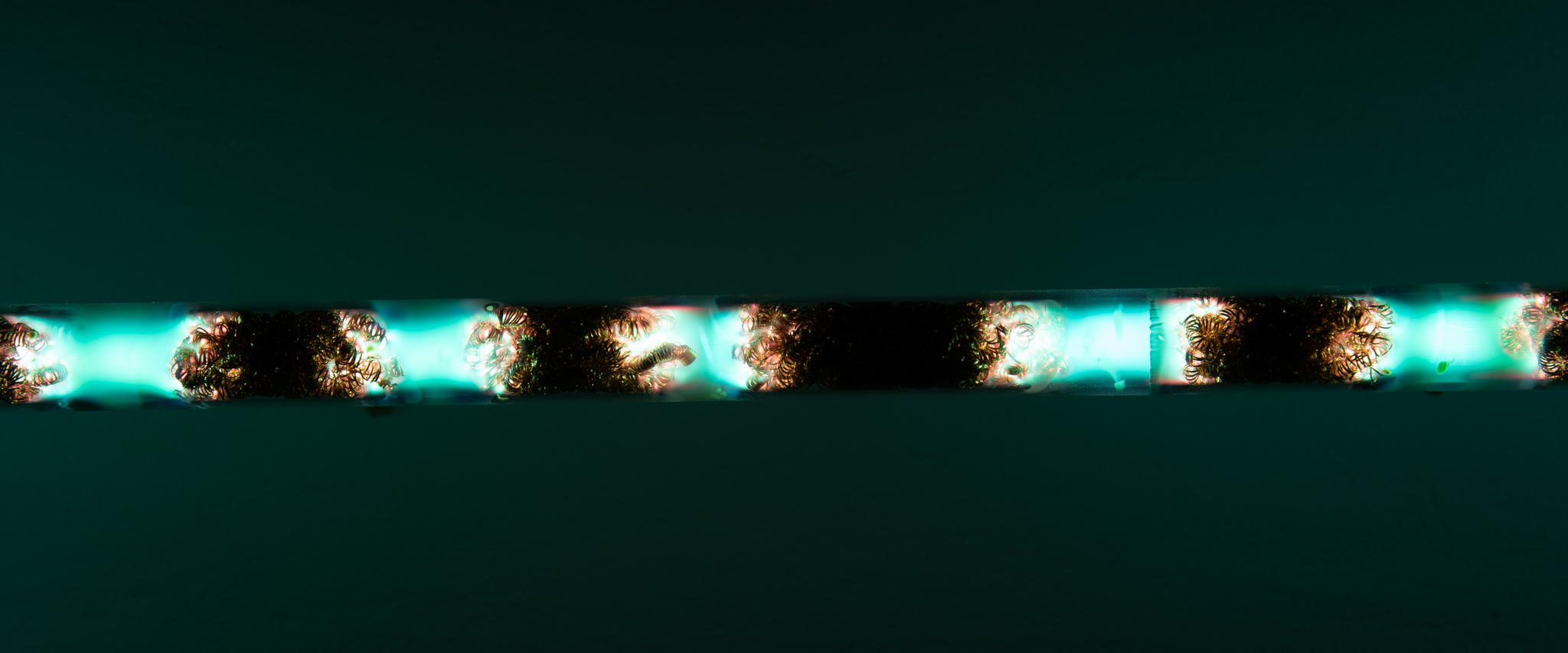 Fortunately, the matter and its attitude offer many sparks for constructing an aesthetic. In the case of my luminous works, the use of noble gases and knowledge of their behaviours were a tool that allowed me to give colour to the flow of electricity, unlocking additional possibilities that culminate in a crystallized and coherent structure.