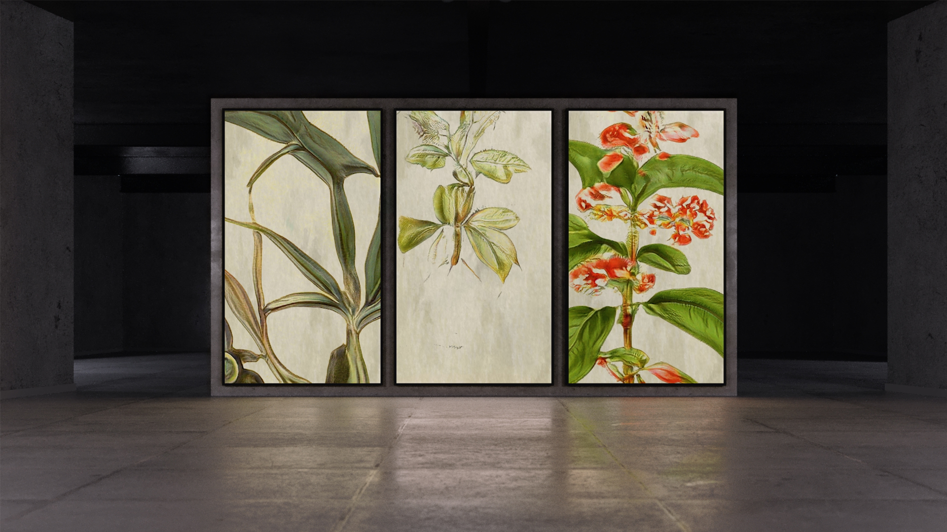 Broadly speaking, we are very inspired by nature, not just botany in the strict sense, but nature as humanity in its physical and social laws and in the relevant micro-connections involved. In our practice, we see technology as one of the expressive tools available, not the end goal. Therefore, we are often moved by a concept, a keyword, a feeling, or a thought that we want to convey, and we ask ourselves what the best way is to express it. At the same time, we are very curious about what is happening in the latest cutting-edge technological research. In the autumn of 2019, when we were exploring some open-source datasets of botanical illustrations from the late 18th century, the Style GAN 2 algorithm had just been released. The concept of the organic production of two competing neural networks, trying to simulate the production of synthetic images like the original, reminded us of the work of the illustrators we were working on. It seemed to us an interesting parallel, with the possibility of creating a fruitful dialogue; thus, we started to investigate this technology.