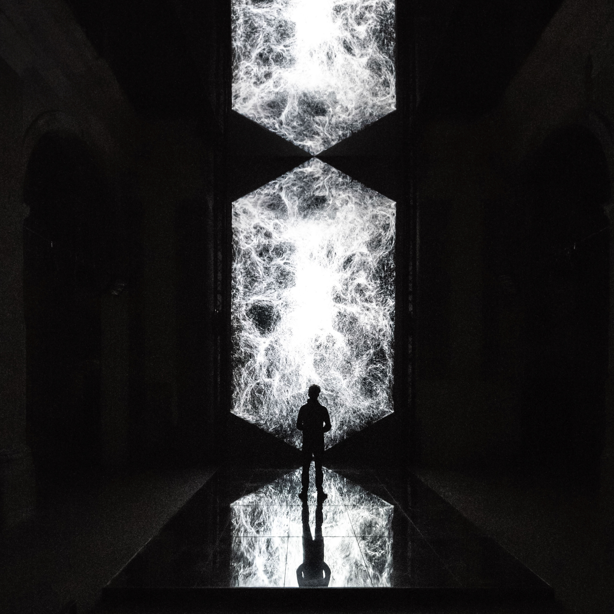 The very first genesis of Multiverse lies in a specific phase of Dökk's production. At the time we were analysing the theories of black holes and their possible representations; we were immersed in Smolin's research and how specifically an analogy of Darwin's law of evolution could be seen applied to the birth of the universes of our galaxy, proposing the model that Smolin calls Cosmological Natural Selection. The idea of creating a monumental installation in which the viewer could have a poetic experience of an infinite gaze, through an audiovisual installation and a generative component following each cycle of the work, seemed to us a significant possibility and a challenge to be taken, both in terms of a change of scale (Multiverse was one of the first large-scale installations of our production) and in terms of a holistic approach to the subject.