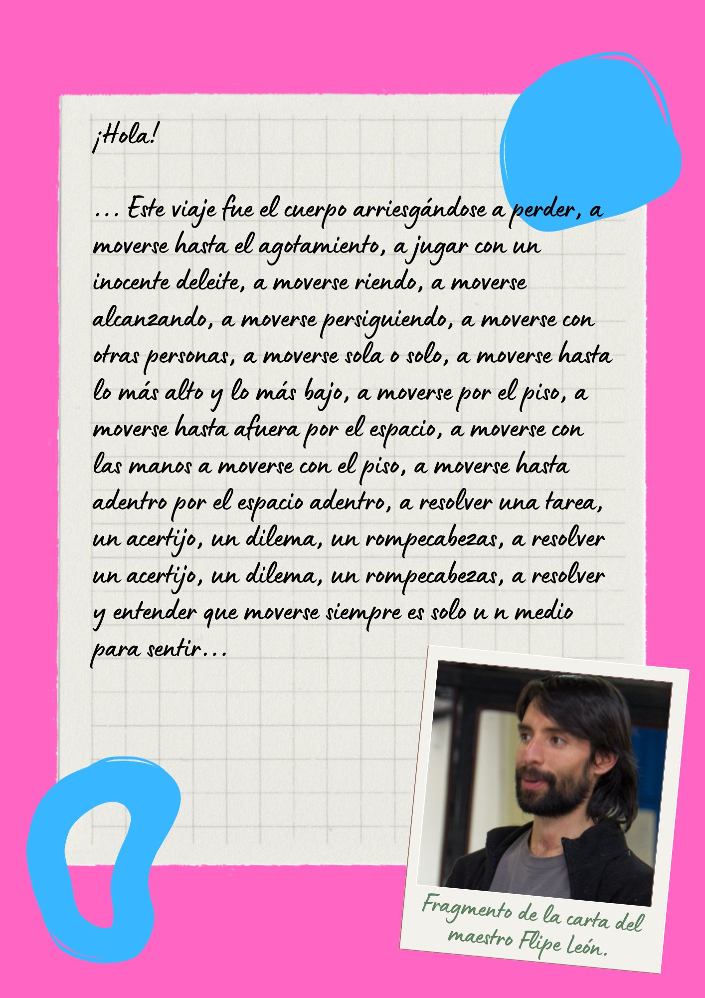 Hilse León, maestra e improvisadora, comparte que esta inquietud sobre cómo decidir lo que propone, para que sea disfrutado por todas las personas, y cuál es su rol como maestra para lograr una dinámica no jerárquica, es constante en su práctica. Esta reflexión la lleva a cuestionar las estructuras de poder y los roles tradicionales de dirección. Esto mismo es señalado por Lorena Lozano, coordinadora de la Clase, para quien la adrenalina de la primera vez que ofreció un taller se manifestó como una dualidad entre un deseo por lograr un objetivo concreto, pero a la vez permitir la experimentación y la duda. Trabajar un tema dede una mirada particular y propia, que a la vez no se sienta impositiva para nadie. Para ella, poner en duda la figura del profe mientras lidia con la propia duda, puede ser un motor para su labor de enseñanza.