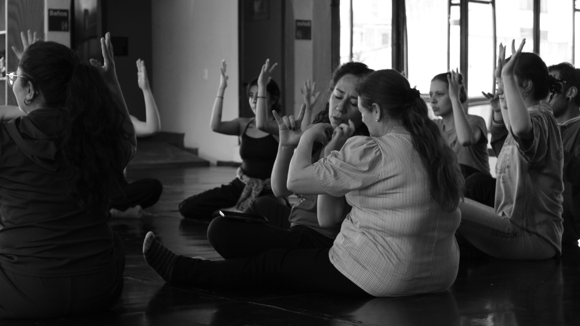 Verónica también destaca algo distintivo de este espacio: la comunicación no verbal constante. Aunque el facilitador proporciona pautas verbalmente, la resolución se lleva a cabo con el cuerpo. Lo mismo ocurre con las señas. Juan Camilo no se equivoca al decir que se trata de buscar la simplicidad en las formas de comunicación. Es crucial recordar que el cuerpo está en el centro, no las formas ni las ansiedades.