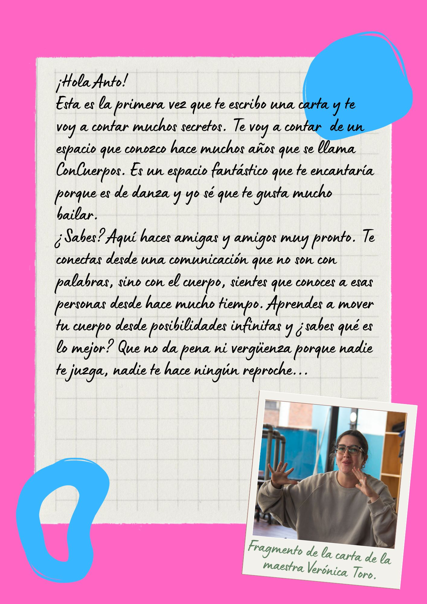Verónica Toro resalta un aspecto esencial de la Clase de ConCuerpos que para ella no es negociable: la posibilidad de mostrar diferentes variaciones de un ejercicio. Insiste en esto porque entiende la importancia de que la información llegue a todas las personas y no se de una exclusión. Esto la llevó a reflexionar: "Hay una diferencia clara entre el facilitador o tallerista y las personas que vienen a tomar la Clase. Para quienes toman la Clase, se apaga lo lógico, se apaga lo mental y se vuelven cuerpos, recibiendo información que los impulsa a moverse. En cambio, para el facilitador, es un reto considerable que implica la solución de posibles problemas y, por lo tanto, es muy mental. Para ello, recurre a todas las herramientas didácticas que conoce y se apoya en la coordinadora y monitores, quienes desde el cuidado y la serenidad respaldan al tallerista".