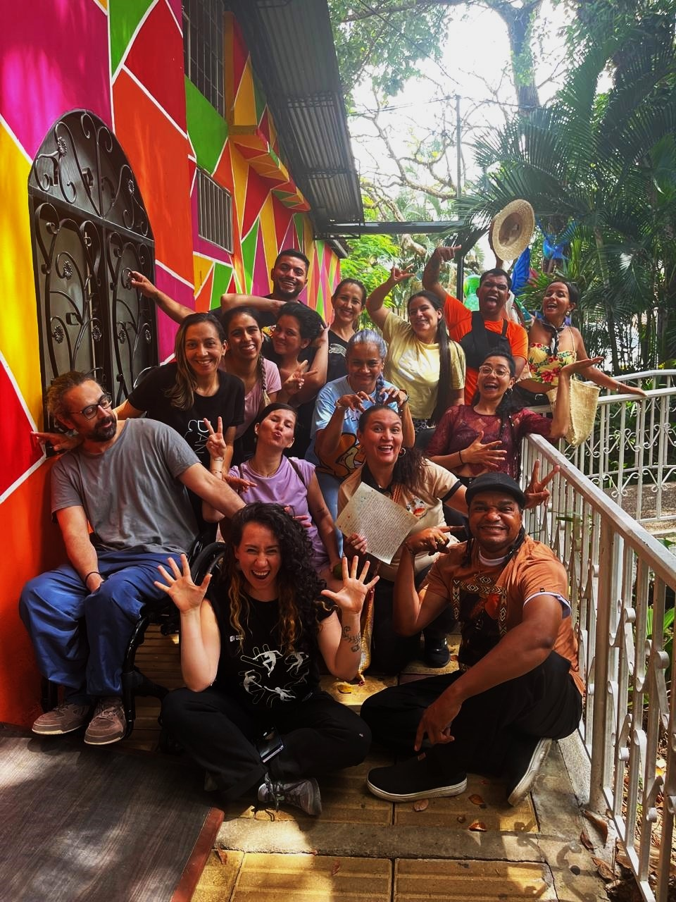 El grupo contó con la participación de tres personas usuarias de silla de ruedas y una persona que utiliza un bastón para desplazarse. También participaron cuatro estudiantes sordas del colegio "La Palma" de Popayán, con edades entre los 16 y los 18 años. Aunque no son docentes de danza sino participantes de una agrupación local, su presencia fue muy valiosa, ya que permitió hacer evidente ciertas posibilidades de la danza inclusiva y enriquecer las discusiones sobre las diversas formas de comunicación. Así, se contó con el servicio de interpretación de Lengua de Señas y se realizaron ejercicios que combinan esta hermosa lengua con la danza.
