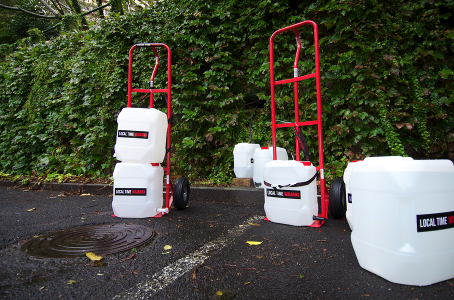The layers of hospitality, sovereignty, and responsibility established by institutional positioning can be seen in the operation of Local Time’s project Waiariki 9 May–11 August 2013 (+1200) for the 5th Auckland Triennial ‘If you were to live here …’, curated by Hou Hanru. Waiariki was on the surface simple: we invited the Triennial’s various host venues to make a simple gesture of hospitality to artists and audiences. Local Time provided water containers to the venues and directions to Waiariki, an old source of drinking water within the pre-European flows on and under the land that the Triennial’s venues occupy. The spring is located in a car park in the University law school, known by a few history enthusiasts and patronised by a few city residents who believe in its health benefits, but it is not marked or signed for the public in any way, and not widely known. We asked the participating organisations to use this infrastructure to serve the spring water to their guests during public events, aiming to connect participants materially to the ‘here’ of the Triennial’s title. The work performs a kind of place-making and activation of the Triennial’s physical environment, without formally soliciting the input of most participants.