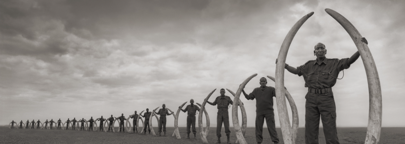 Nick Brandt, (2011). Line of Rangers Holding the Tusks of Elephants Killed at the Hands of Man.