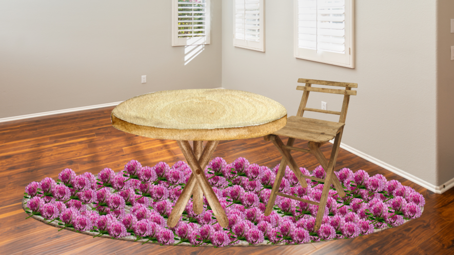 Visualisatie: Ik kreeg gelijk een associatie met een zacht kleed. In de afbeelding hierboven zie je dat ik een kleed van rode klaver heb gevisualiseerd.