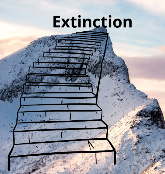 "klimaat verandering vormt geen probleem voor soorten want ze kunnen naar andere gebieden trekken". Voor een deel is dit waar en zien we dit ook gebeuren, er komen steeds vaker zuid-europese soorten naar Nederland omdat ze zomer hier steeds warmer worden. Maar je hebt natuurlijk ook soorten die op uithoeken van de wereld leven en niet verder noordelijk of juist zuidelijk kunnen bewegen. Of in het geval van dieren die op bergen leven wanneer het steeds warmer wordt en sneeuw smelt kunnen ze verder omhoog gaan, maar een keer houdt het natuurlijk op. Vandaar de trap naar extintctie in de visualisatie hiernaast.
