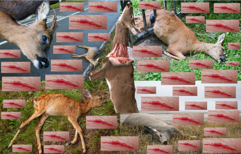 Dit is de 2e visualisatie in de serie "dead by a thousand cuts". Zoals ik hierboven al noemde er zijn veel verschillende proberen waardoor een soort achteruit kan gaan. In dit voorbeeld kunnen de volgende problemen spelen: versnippering van leefgebied, jacht, gif, afname van voedsel (doordat wij leefgebied verwoesten), kunstmatige barrières, afval, etc.