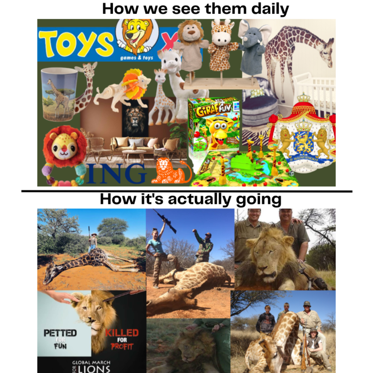 Marc Angelo: "In een onderzoek naar de tien meest charismatische diersoorten ter wereld werden 4522 bronnen op internet geraadpleegd, de websites van dierentuinen in de honderd grootste steden bekeken, de soorten die Disney en Pixar gebruiken geindentificeerd en 224 schoolkinderen in Frankrijk, Spanje en Groot-Britannië ondervraagd. De tijger, de leeuw, de olifant, de giraffe, het luipaard, de panda, de jachtluipaard, de ijsbeer, de wolf en de gorilla kwamen hier als de top 10 naar voren. Op de wolf na staan alle soorten geclassificeerd als 'kwetsbaar', 'bedreigd' of 'ernstig bedreigd' waar het hun kans om uisterven betreft, en van deze negen zijn de aantallen de afgelopen dertig jaar met 20 tot 90 procent achteruitgegaan. Die achteruitgang en kans op uitsterven was veel deelnemers aan het onderzoek onbekend. Van gorilla, jachtluipaard, luipaard, leeuw en giraffe wist de helft of meer van de deelnemers niet dat het bedreigde diersoorten zijn. Het onderzoek kreeg een staartje waarin de consequenties van deze beeldvorming werd onderzocht. Aan tweeënveertig willekeurige personen werd gevraagd te turven hoe vaak ze de tien dieren op zeven opeeenvolgende dagen in het dagelijks leven tegenkwamen, zoals in reclame-uitingen, dierentuinen, boeken en tijdschriften, als logo of op televisie. De deelnemers namen maximaal eenendertig exemplaren van deze dieren waar. Zo zagen zij gemiddeld 4,4 leeuw per dag. Dat komt voor de tweeënveertig deelnemers overeen met twee- tot driemaal zoveel 'virtueel' waargenomen leeuwen per jaar ten opzichte van de leeuwpopulatie in West-Afdrila. Dat kan verklaren waarom het beeld over de status van de leeuw rooskleuriger wordt ingeschat dan de werkelijkheid is. De onderzoekers hadden het over de 'geliefd-maar-genegeerd-paradox'. 'de publieke perceptie van de beschermingsstatus van deze soorten lijkt gebaseerd op virtuele populaties in plaats van de echte,' aldus de onderzoekers.