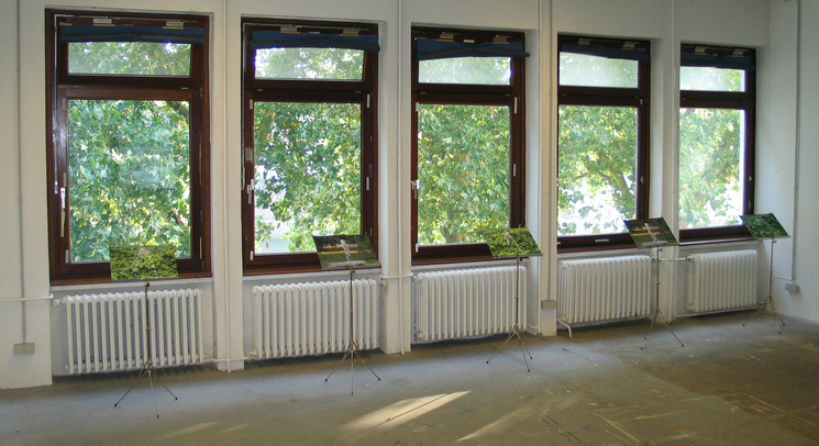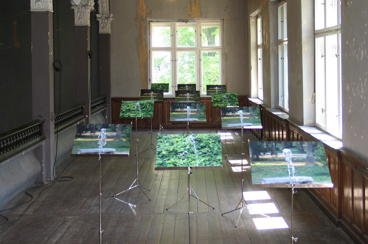 The photography installation Choir (2011) takes up the theme of photographic space again and presents a photographically recorded spatio-temporal event laid out in a planar grid-like constellation.