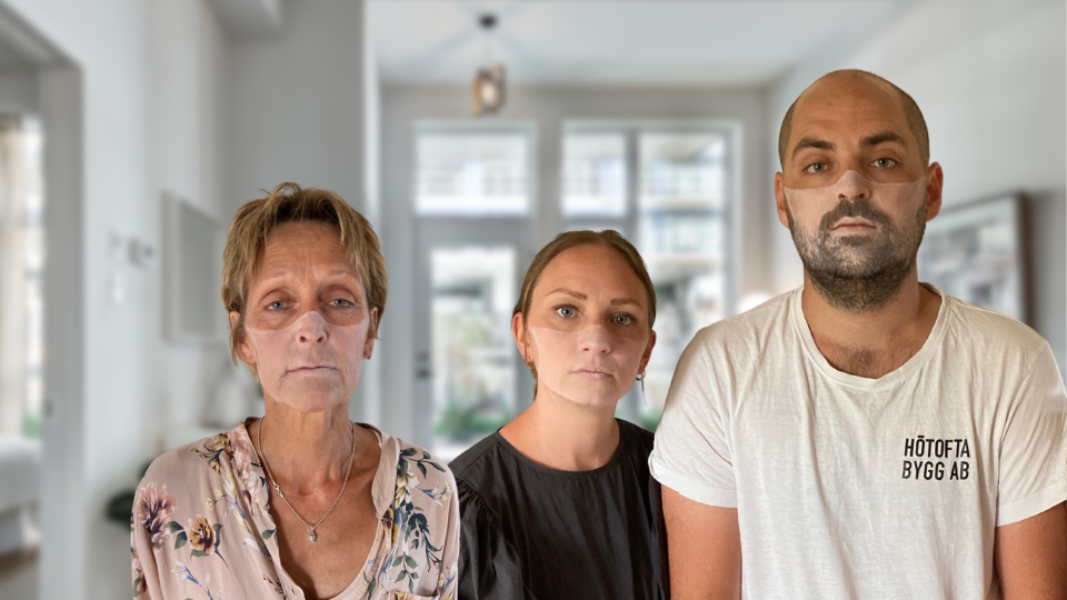 Jag valde munskyddet som symbol, det har använts i hela världen under pandemin och alla kan relatera till den, men jag ville inte att aktörerna skulle ha ett konkret munskydd på sig eftersom det skulle täcka en för stor del av ansiktet, publiken skulle få svårt att se eller höra vem som talade och man skulle inte heller kunna urskilja individerna i gruppen, det skulle inte heller kännas som ett sceniskt teatralt tecken. Jag ville ha en förhöjning. Min ambition var att karaktärerna skulle kunna träda fram som individer med ”levande” ansiktsuttryck med hudkänslan kvar även om de ingick i en helhet.