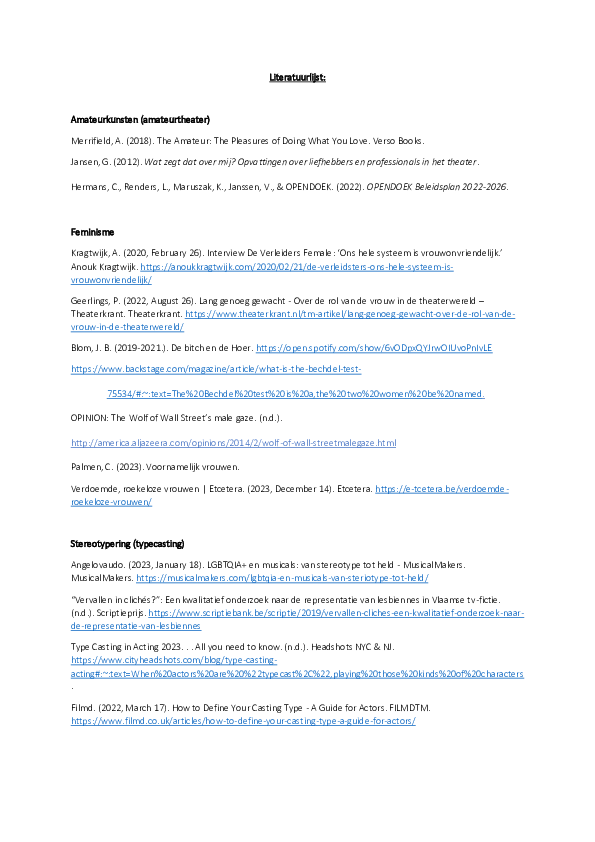 Een thesis/ onderzoek over hoe Vlaamse actrices hun rol creëren in theater en film. Het is een onderzoek waarbij er verschillende actrices (van verschillende theaterscholen) zijn geïnterviewd over zij aan de slag gaan met verscheidene acteertechnieken en stijlen. Deze bron wilde ik gebruiken om een beter beeld te krijgen over hoe actrices in een rol kruipen ook al voelt deze soms oncomfortabel aan. Als ik het proces begrijp van hoe het vormen van een rol tot stand komt, kan ik ook beter begrijpen waar het mis kan lopen.