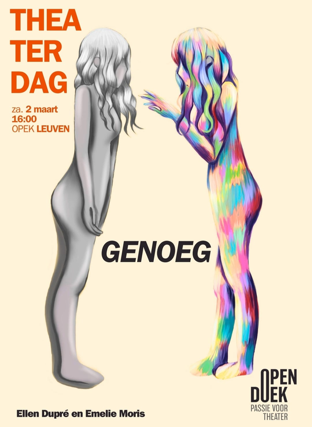 - De affiche vormgeven was ook een heel proces, maar uiteindelijk ben ik blij dat ik niet bij mijn eerste idee ben gebleven. Hetzelfde geld voor de voorstelling, ons eerste script was goed maar hoe meer we experimenteerden en terugkoppelden hoe sterker de ideeën en de vormgeving van de voorstelling werd.