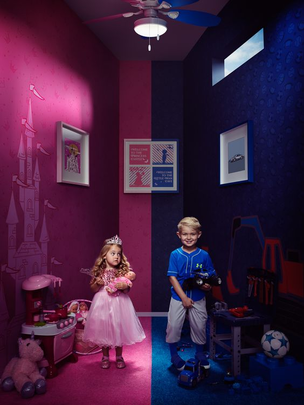 - Kleurentheorie: jongens zijn blauw, meisjes zijn roze. (eventueel met spots werken doorheen de voorstelling, of kleuren laten terugkomen symbolisch doorheen de voorstelling) bv. In het begin van de voorstelling dragen de vrouwen roze en de mannen blauw, naarmate de voorstelling vordert en we de stereotypes in vraag stellen durft dit meer en meer te wisselen en wijken we hiervan af.