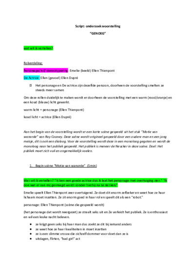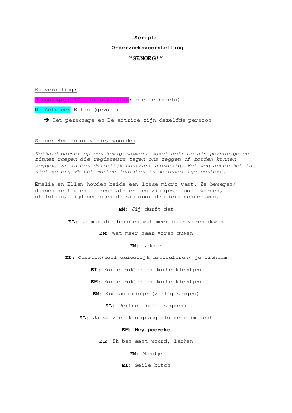 De scène die ik heb moeten spelen, waar ik mij niet goed bij voelde anders gebracht. Andere kledij, met z'n tweeën, op en top vrouw zijn, seksualiteit omarmen. Dit als bedoeling om het publiek ongemakkelijk te laten voelen.