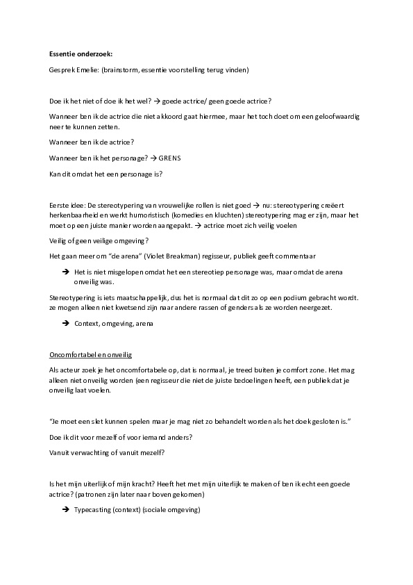 22 januari = KERN , essentie onderzoek (gesprek Emelie)