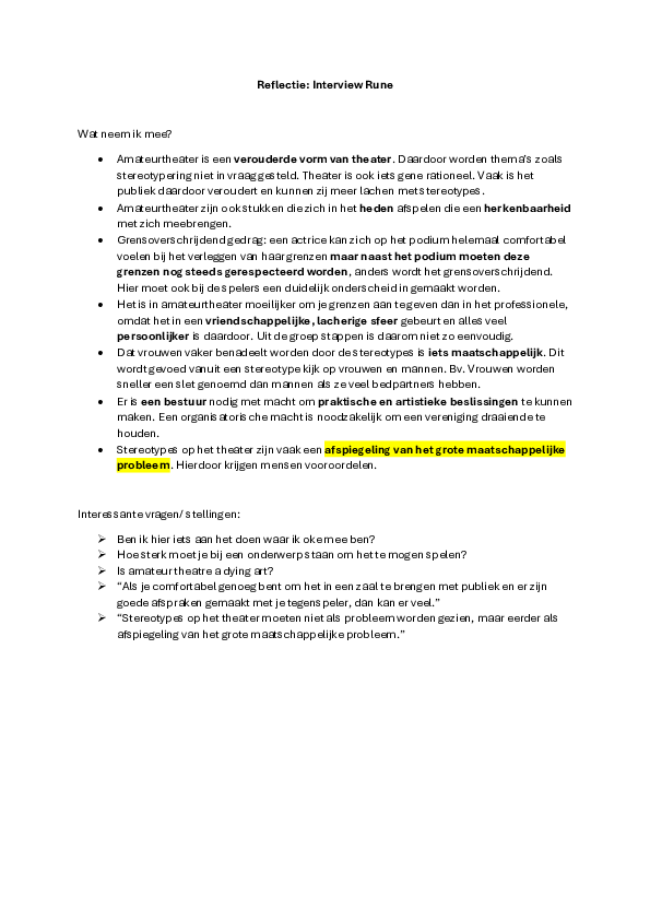 - Het amateurtheater is niet zo multicultureel ingesteld. Dit is een andere interessante piste die ik zou kunnen onderzoeken. Discriminatie door een andere etnische achtergrond. Maar dit ga ik niet behandelen in mijn onderzoek, omdat ik mijn focus wil behouden op seksisme en stereotypering van vrouwelijke spelers. Omdat dit zelf het meeste aansluit bij mijn ervaring en ik mij hieraan kan spiegelen.