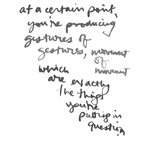 The project’s conversation-based form emerged from my desire to discuss and situate this contradiction: to extend this as a question of how to study with and without words, in the company of others who work with language in oblique ways.