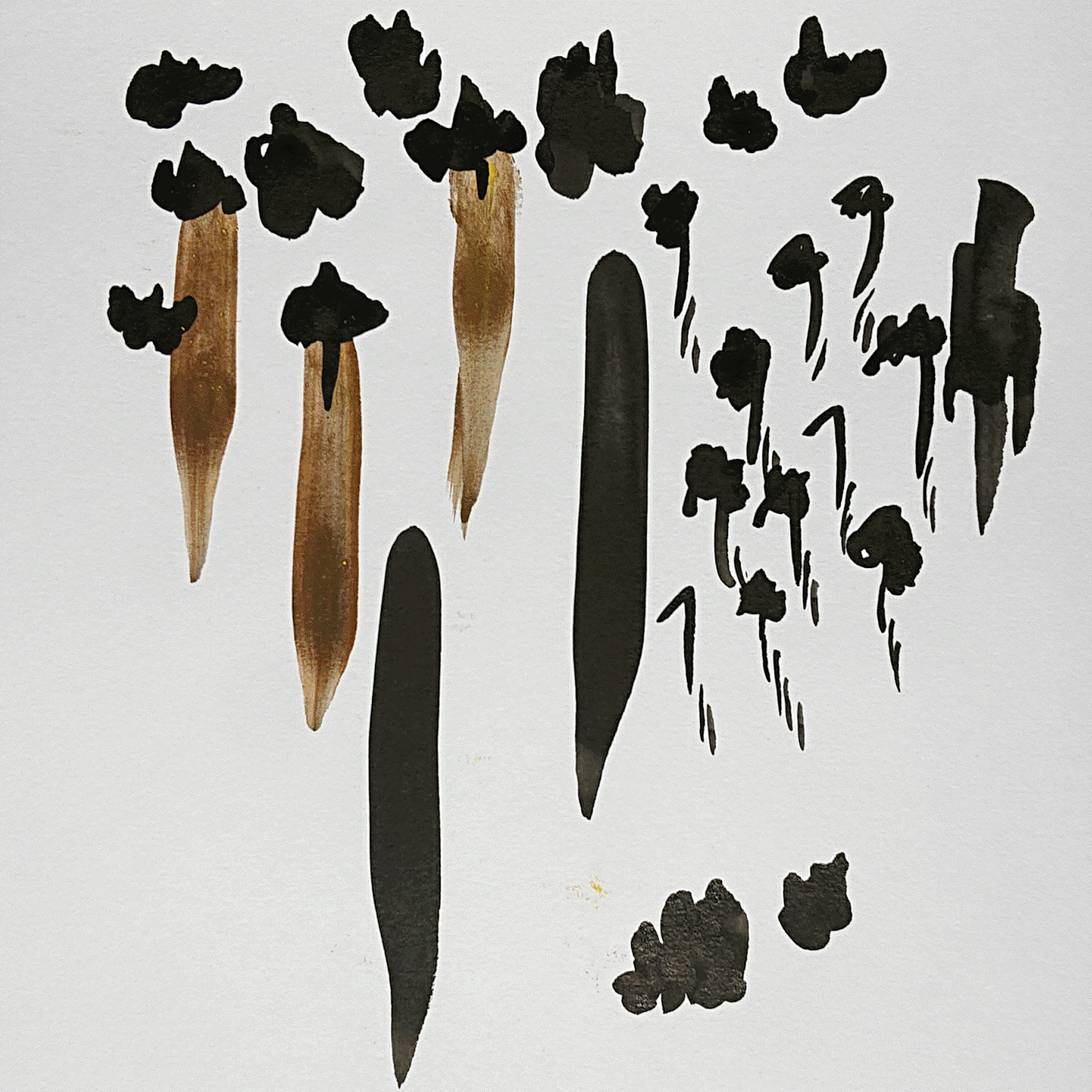For The Opposite of an Opposite, each study partner shared a response to the constellation of study traces — drawings, writings, stories, questions — in the form of a gesture or reflection. These gestures were distillations of our various forms of collaborative study and included somatic exercises, a sing-along, counter testimony, frenzied live translation, a library, a movement sequence, and a guided meditation with plants.