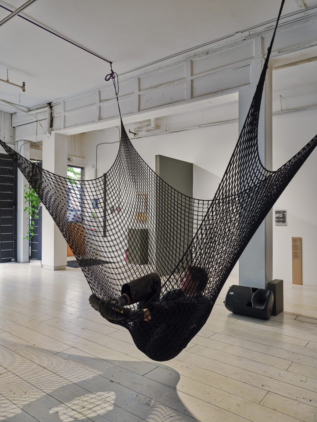 Sound installation with cargo net hammock
