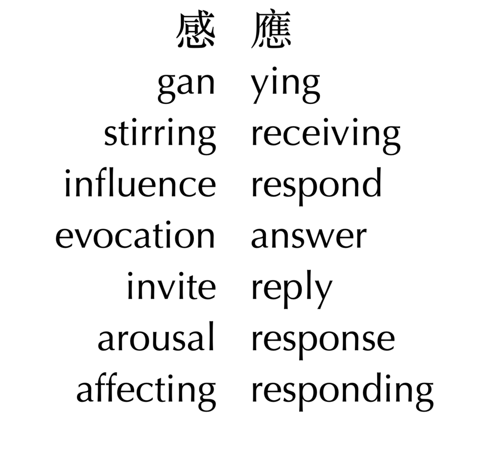 This research has taken shape as various lecture performances, sound works, and writings that reflect on the ganying 'mutually resonant' connections in my artistic processes and aesthetic inquiry.