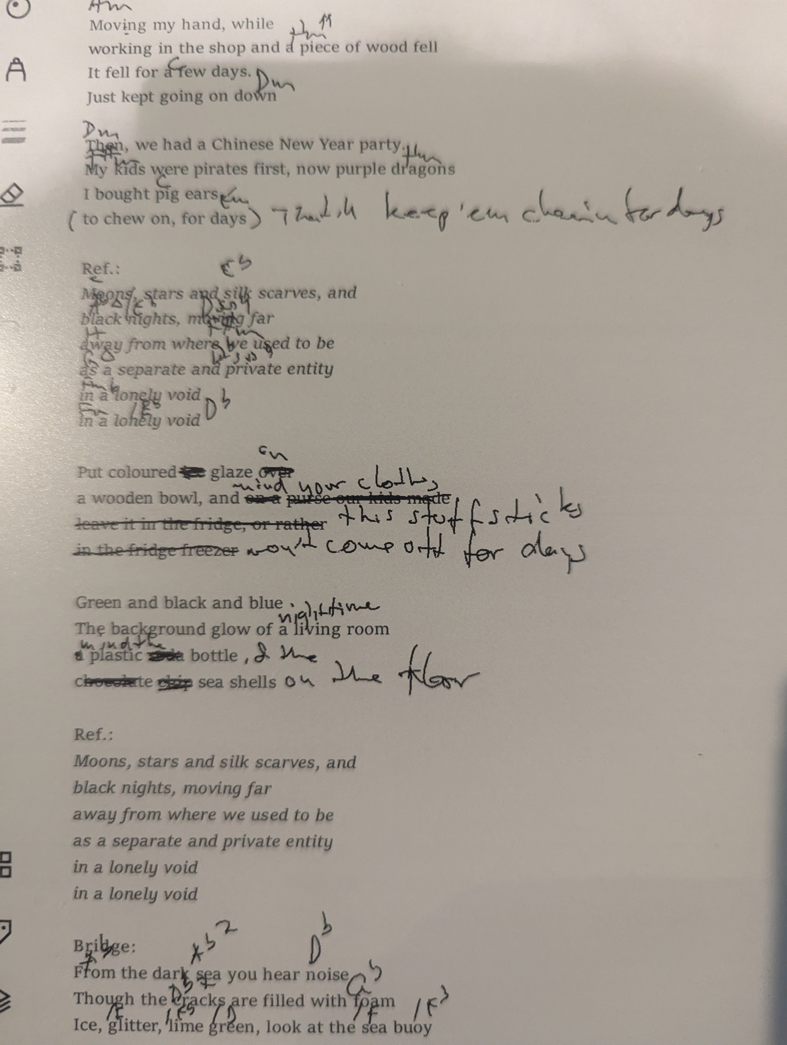 Låta er et resultat av rydding og struktering av musikalsk tilbakemelding (se over), der teksten inngår som et strukturelt element.