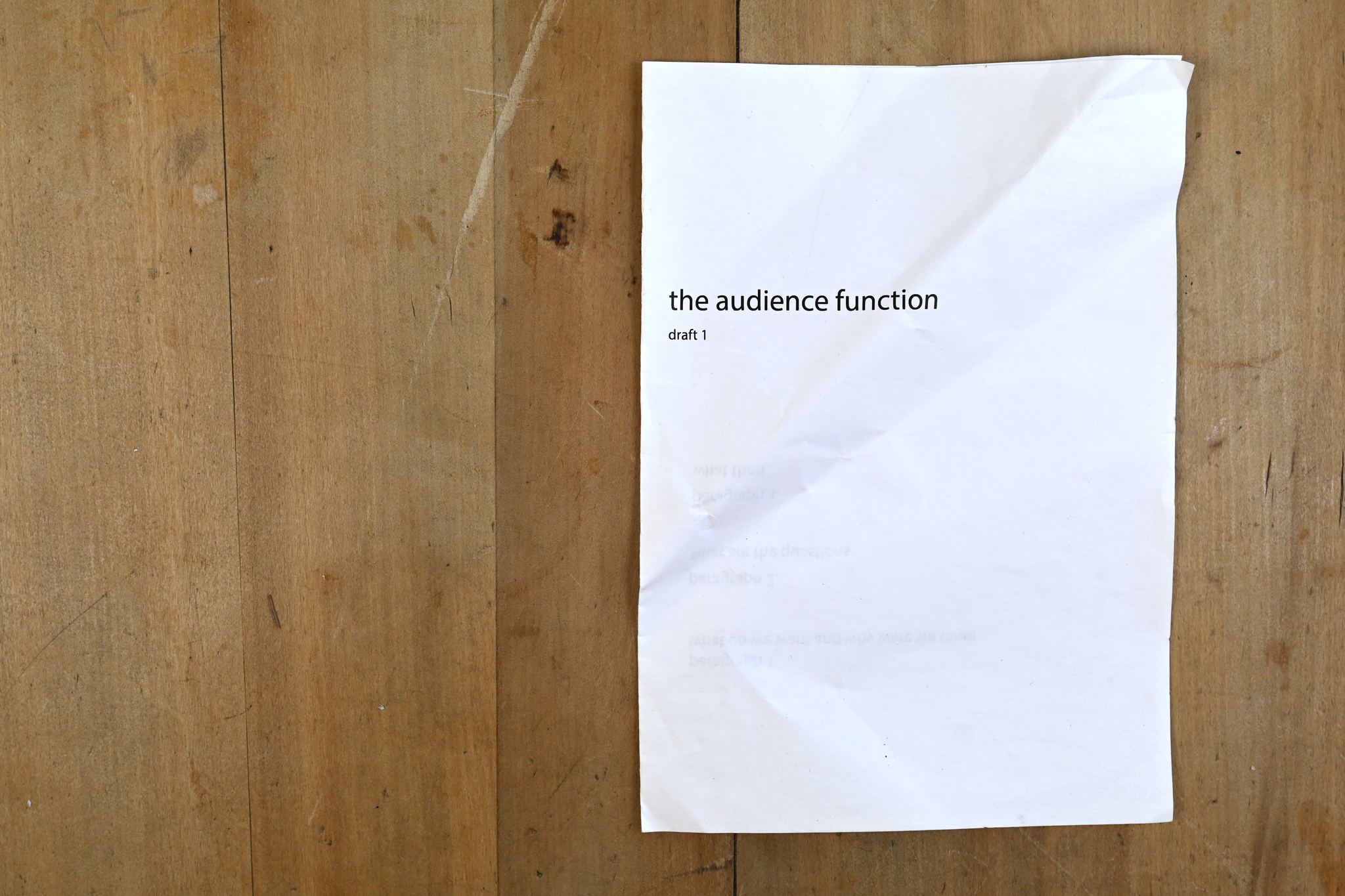 The studies at the Performing Arts Research Center in Helsinki are structured so that there were about two years worth of supporting studies: seminars and courses, which are scheduled to happen during one week each month of the semester. In these seminars doctoral candidates approach different aspects of artistic research, meet each other and present their work. During the autumn of 2017 I was intensely working my way into the context of academic artistic research through these seminars and at the same time orienting myself to the phenomenon of the audience by attending a set of performances that had an influence on my approach.