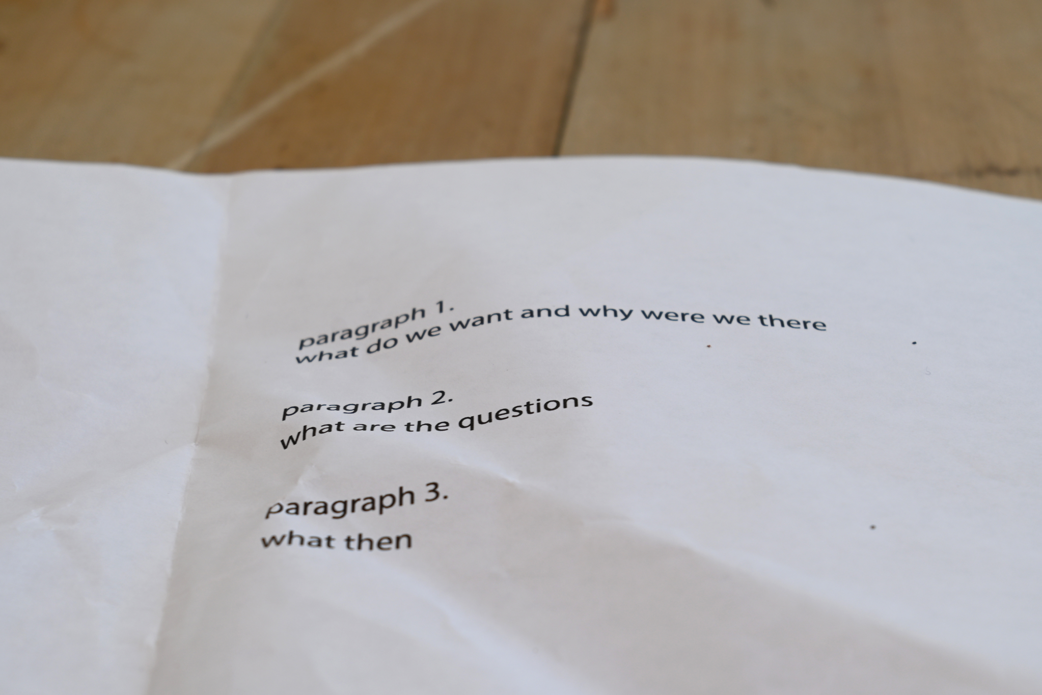 One of the seminars I attended during the first year of my doctoral studies was Methodological Pluralism led by Leena Rouhiainen and Kirsi Heimonen. During this series of seminars the participants took turns in presenting their research project from the point of view of methodology. In January 2018 it was my turn. I started my presentation by handing out programme notes in the form of a folded A4-sheet. The reading of this sheet was followed by a practical exercise and a lecture presentation of my methodological thoughts at the time. This small piece of paper with only few words in it turned out to introduce several methods that would permeate my research practice to come.