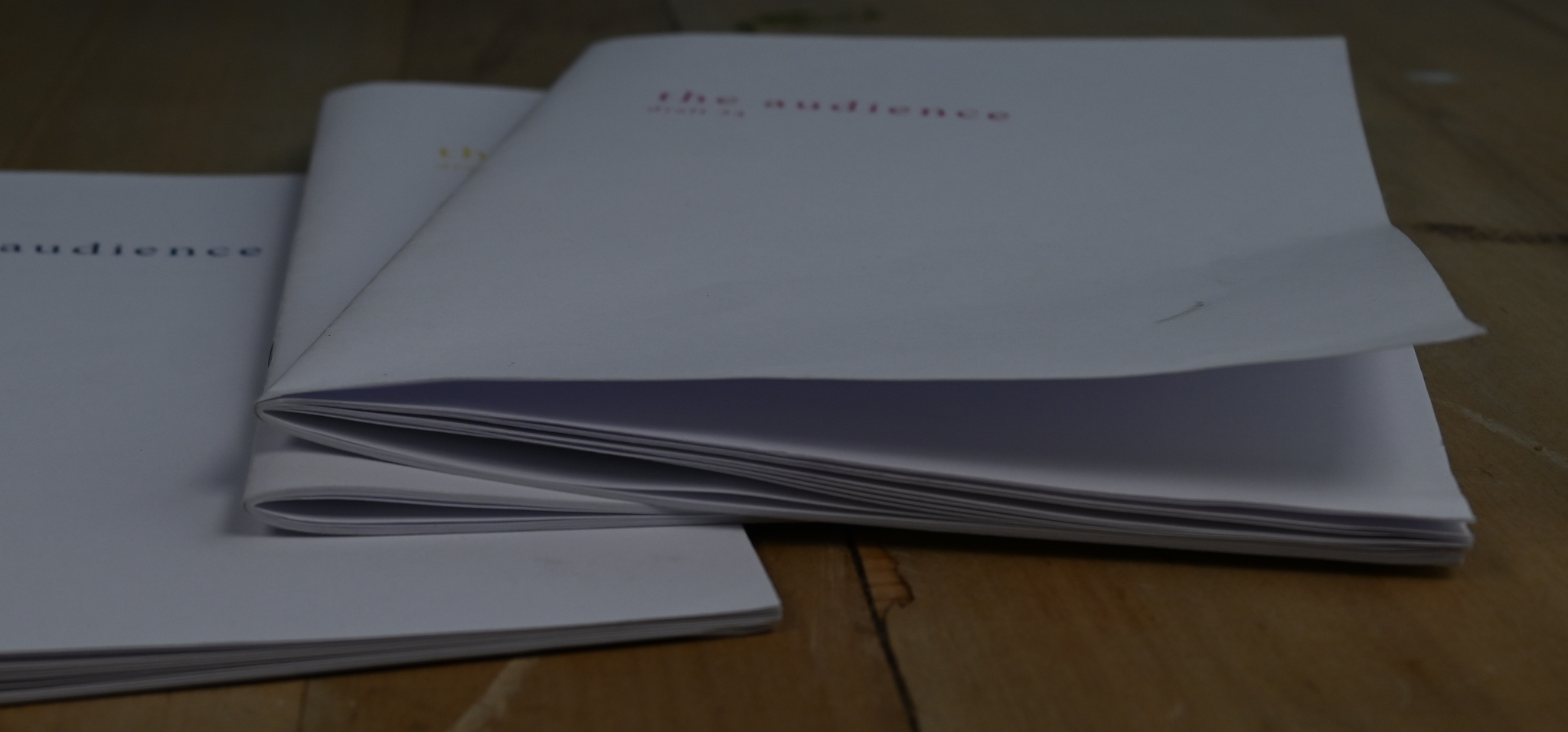 After the experiences from Draft 4 in Copenhagen and Draft 5 in Palestine, I felt that the format I had been iterating so far, a single folded A4-sheet, was too limited. It was a stingy aesthetic, which left the audience members with a lot of responsibility and almost no support. I offered them virtually no dramaturgical temporal structure and thus little help with liminal dramaturgy. These artistic disappointments in fact made me aware of the necessity of both subordination and liminal dramaturgy—in the case when a maker aims to create and hold an audience body. While it had made sense to start a practice in a minimalist way, I felt the justification for this stylistic scarcity had run out.