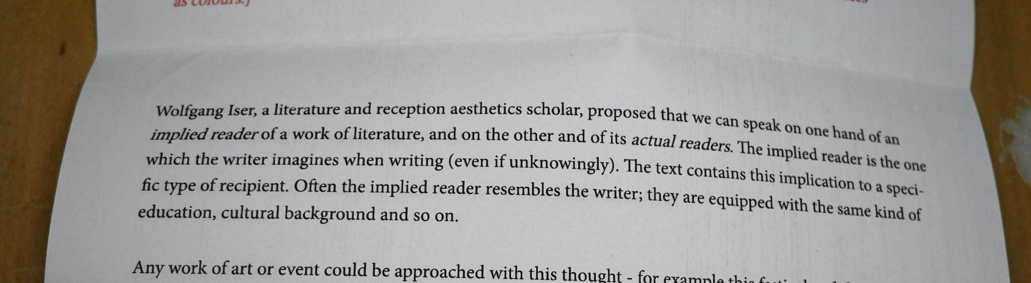 Through customizing the letters for the actual members of my audience, I wanted to address the relation of the maker and the audience by explicating what is by default implied. Unlike in art in general, the audience members of Draft 9 were not fictive in the sense of Iser’s implied reader.